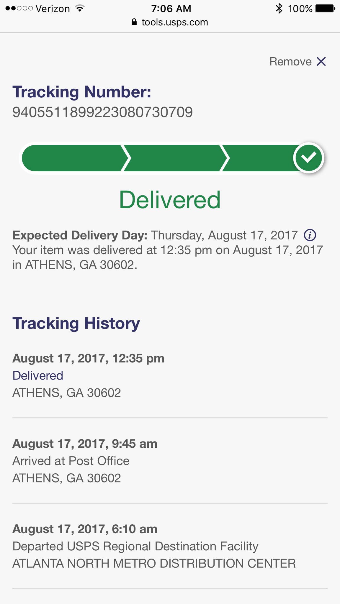 Rob Hoos On Twitter Usps Marked As Delivered But Not Actually Delivered Address Input Was Buford Ga Somehow Delivered In Athens 2hrs Away Https T Co Go4h4jqpnj Twitter